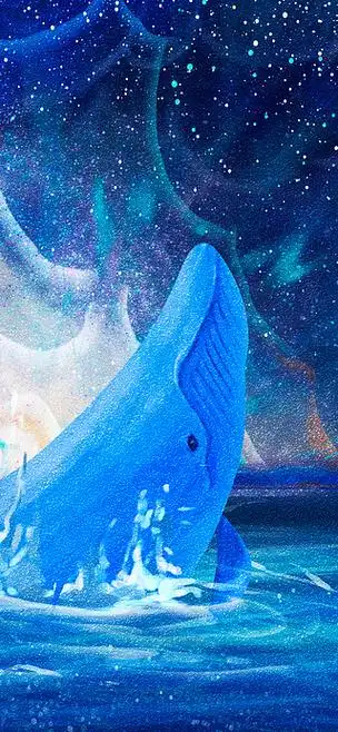 梦幻治愈唯美鲸鱼女孩大海星空手绘插画唯美大海漂流瓶蓝色星空梦幻