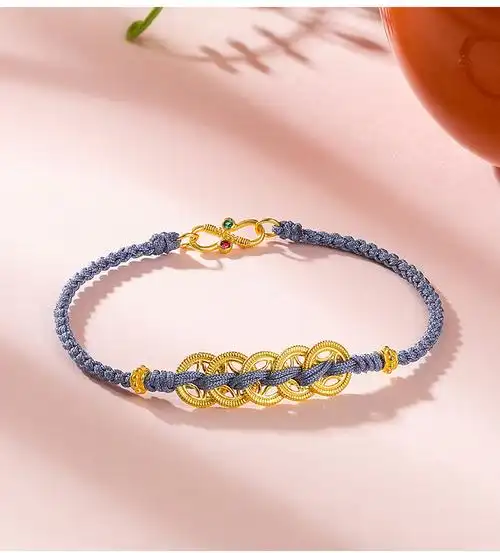 老凤凰古法黄金手链女铜钱币编绳红绳本命年手绳999足金转运珠小金珠