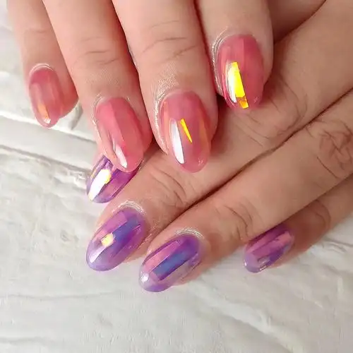 一眼万年的极光镭射款美甲