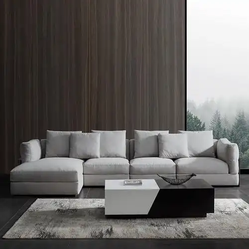 科技布意式极简沙发现代简约布艺沙发轻奢灰色黑白灰风格布艺沙发