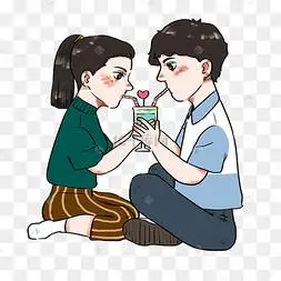 卡通情侣喝饮料