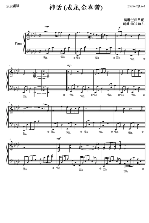 神话(成龙,金喜善)钢琴谱-兰田日暖-虫虫钢琴
