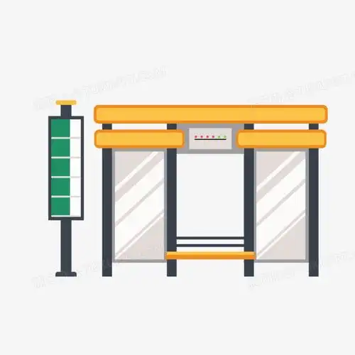 手绘公交站牌候车区免抠素材