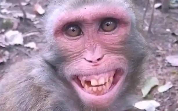 猴子是一种非常聪明的灵长类动物,图片之中的它咧嘴大笑,和人颇为相似