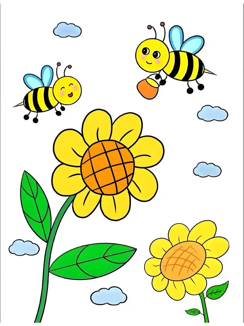一起来画向日葵 简笔画系列.阳光暖暖,微风习习,愿你像向