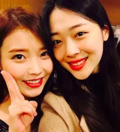崔雪莉和iu昔日合照,同是清纯系女生,镜头前默契甜笑情同姐妹_黑色